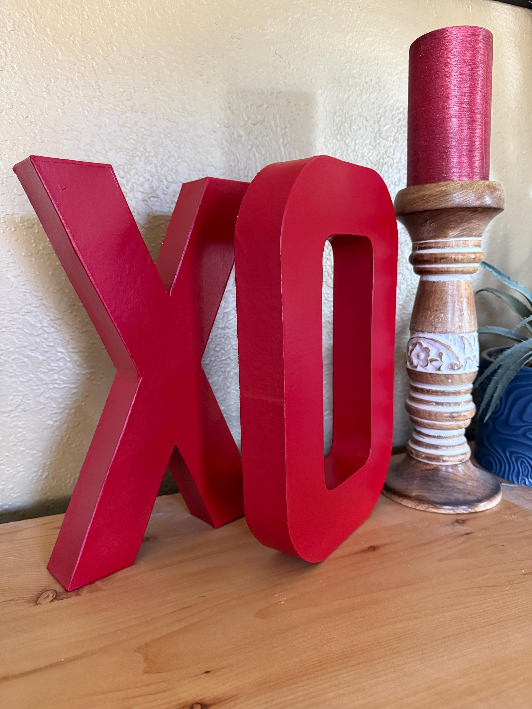 These XO letters are perfect for your mantel, sideboard or shelf. It is made out of paper mache and it stands alone. Would be great at your desk for a Valentine's Day decoration. Wonderful at a wedding or shower.