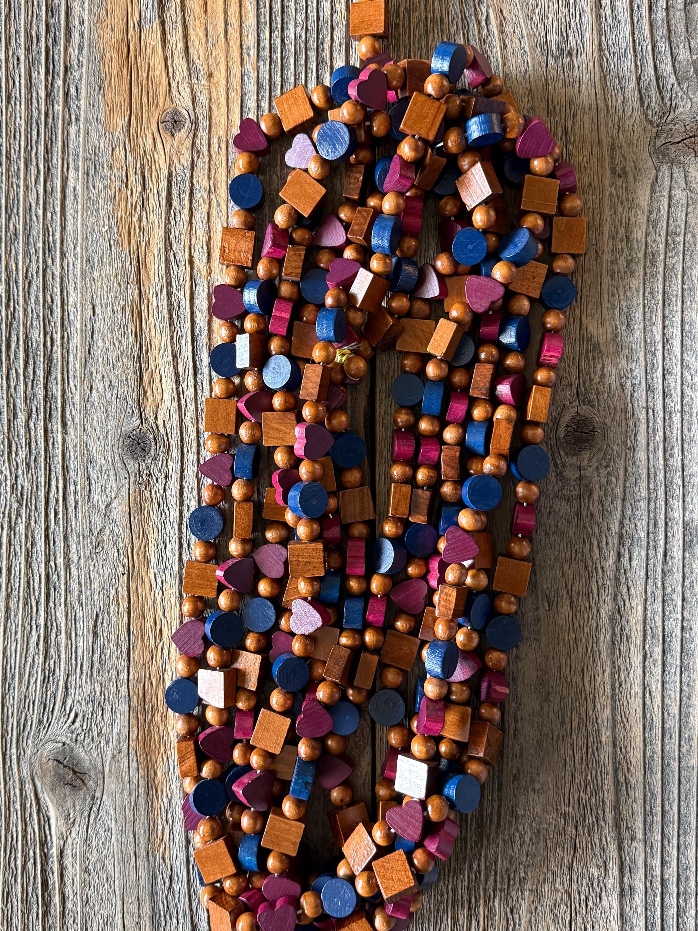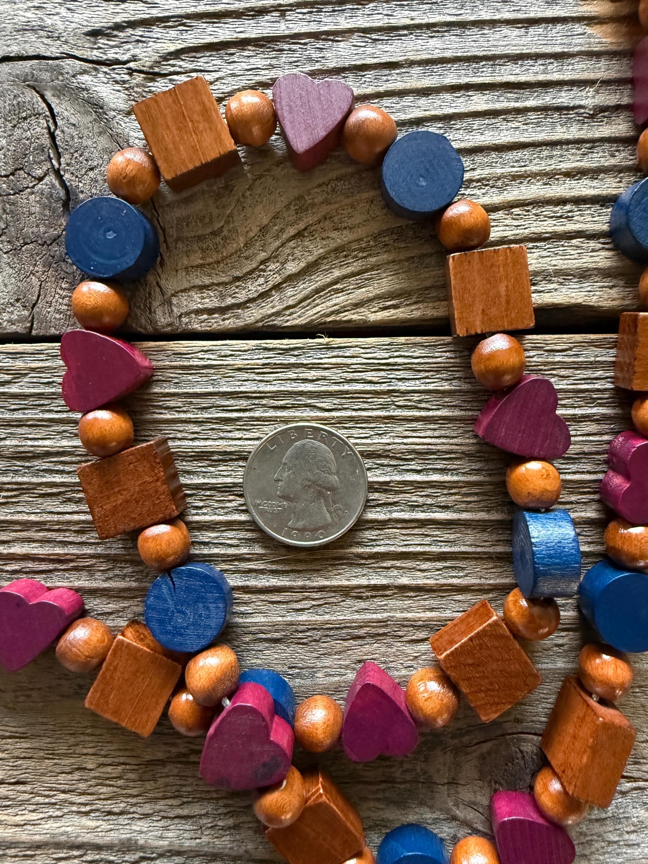 Multi-colored wood beads, Larger beads are approx 1/2 inch and smaller round beads are approx 1/4 inch
