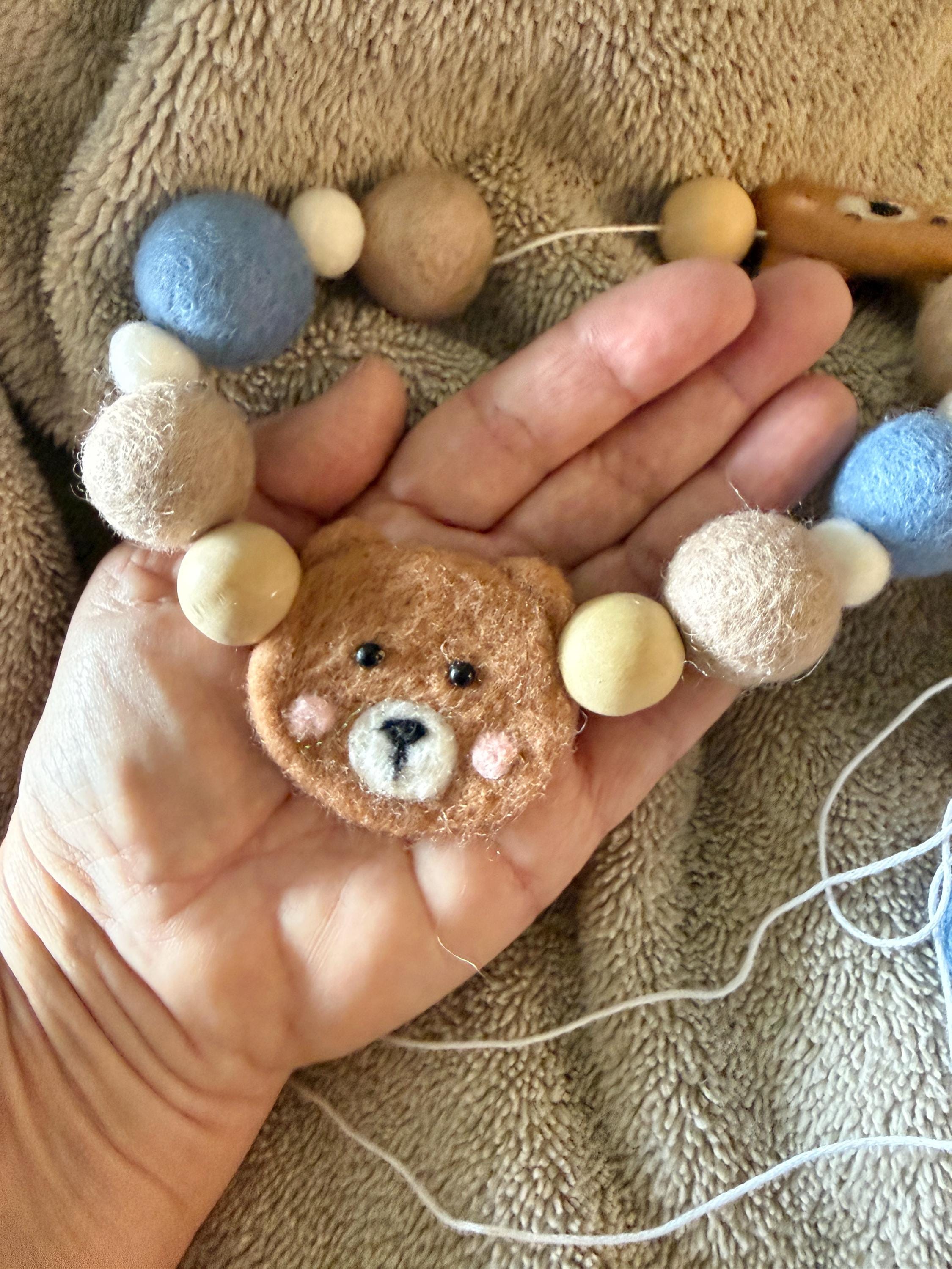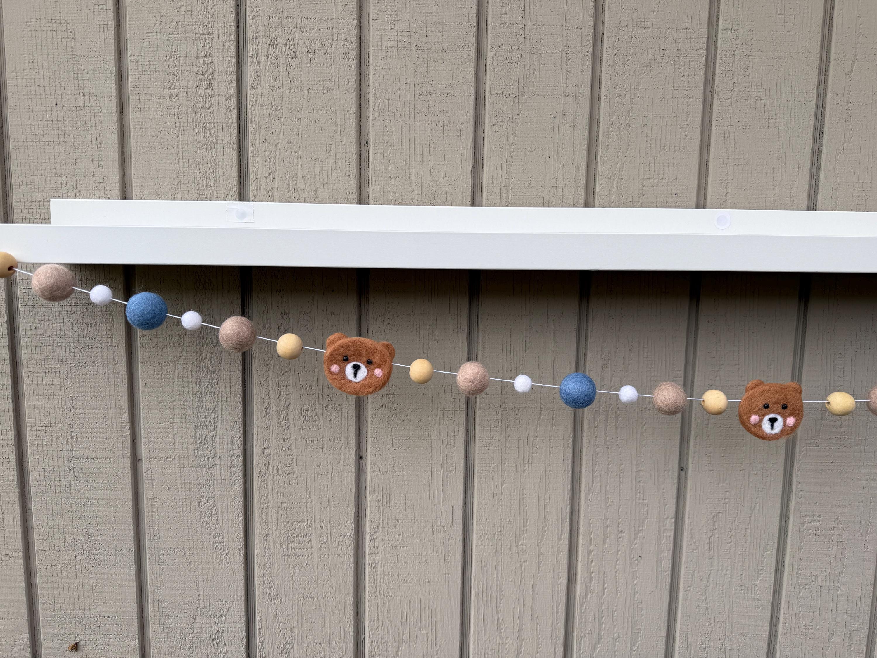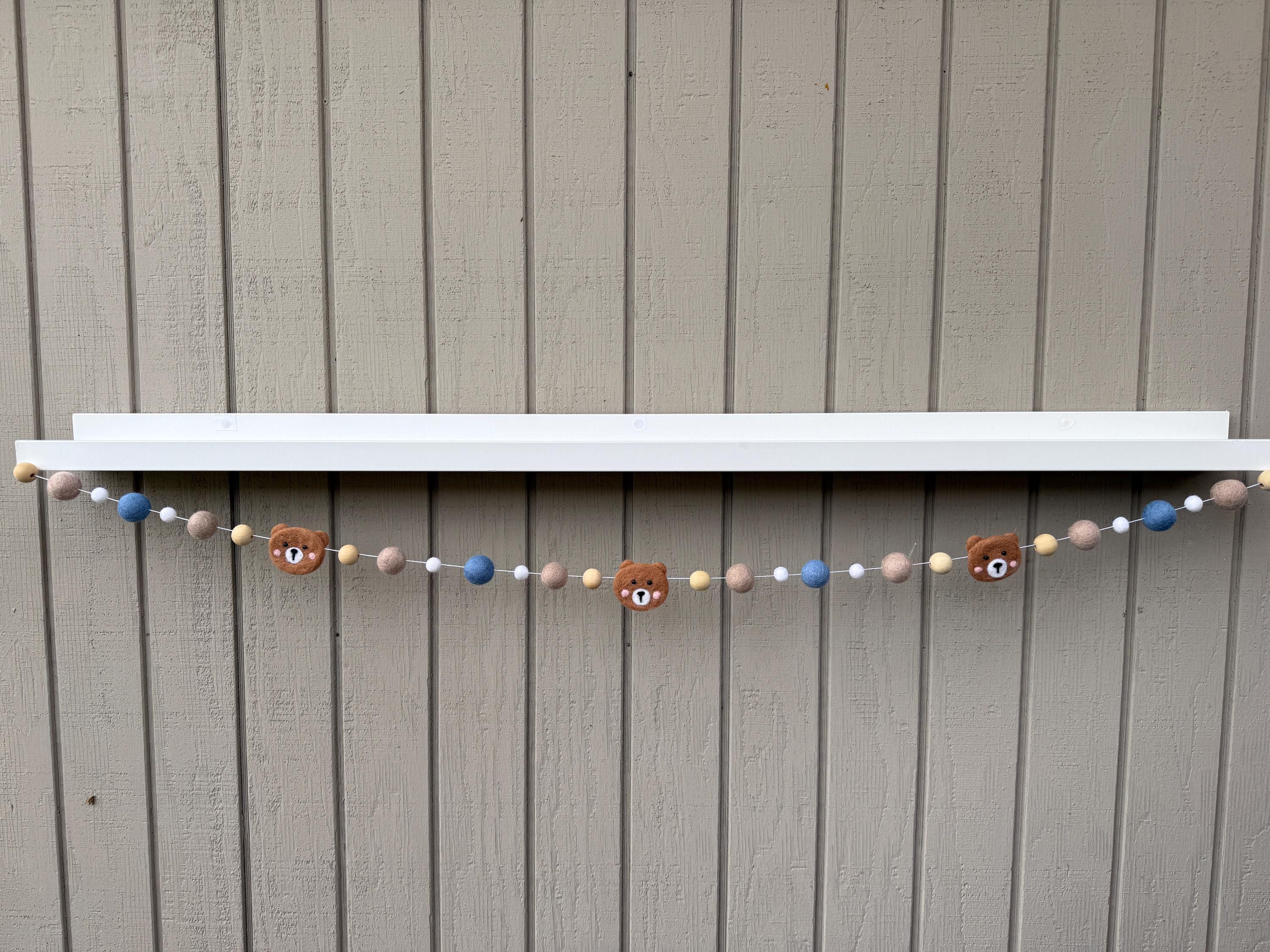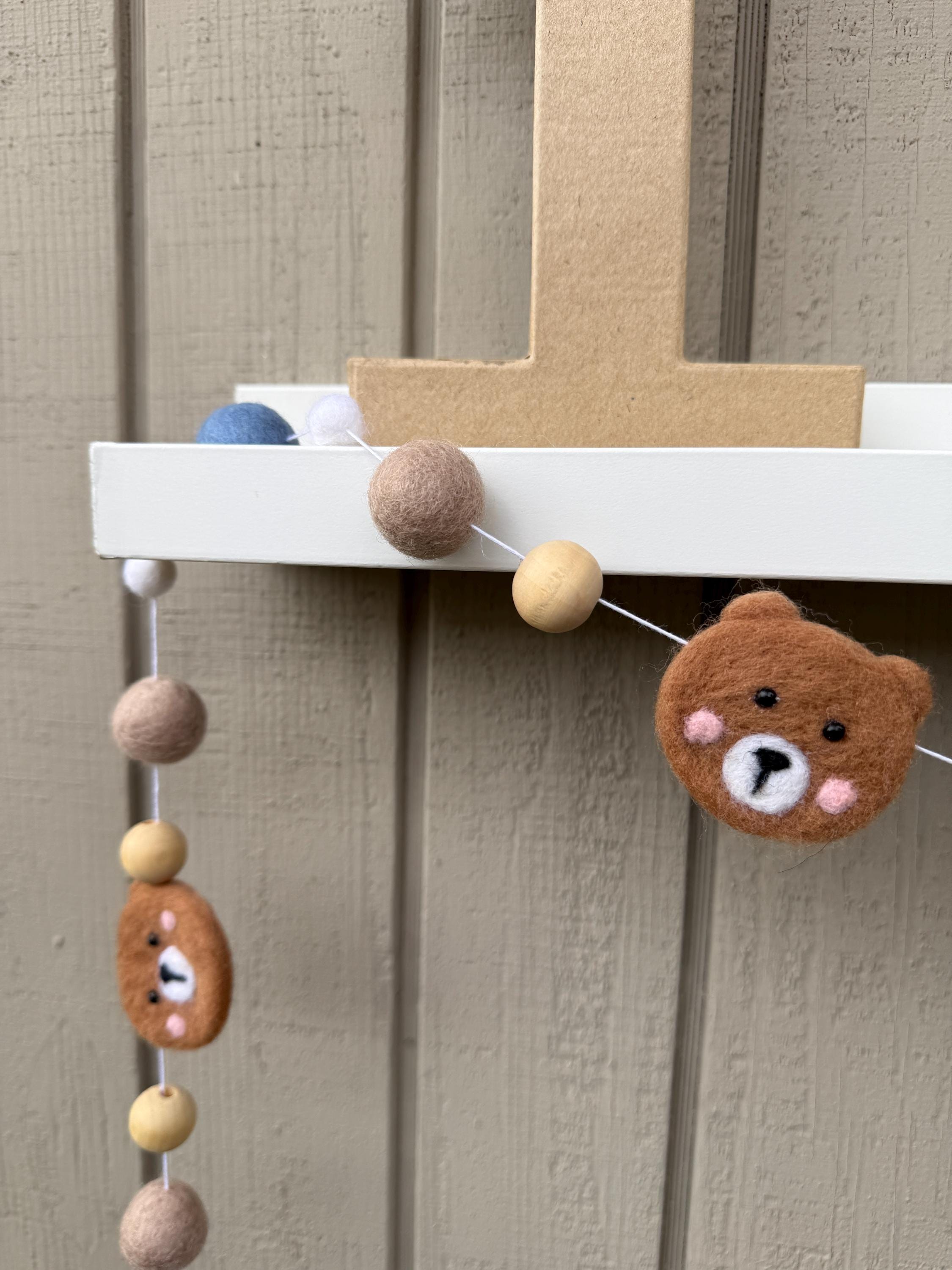 Bring instant happiness to your space with this delightful felt bear garland! Made with soft felt balls and felt bear heads, this garland features light brown felt bar head paired with white, blue, tan and natural wood beads for a fun, cheerful look.
