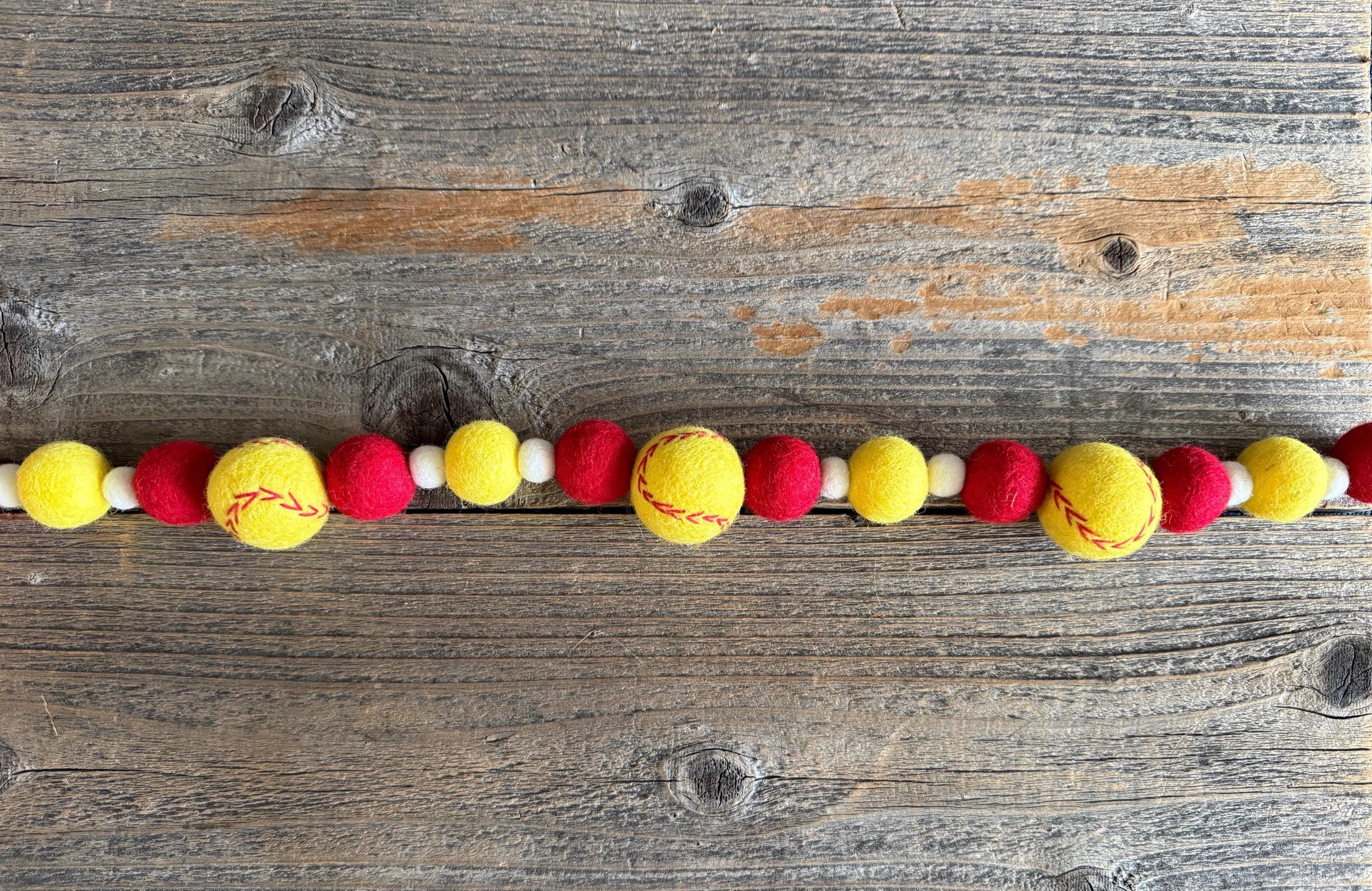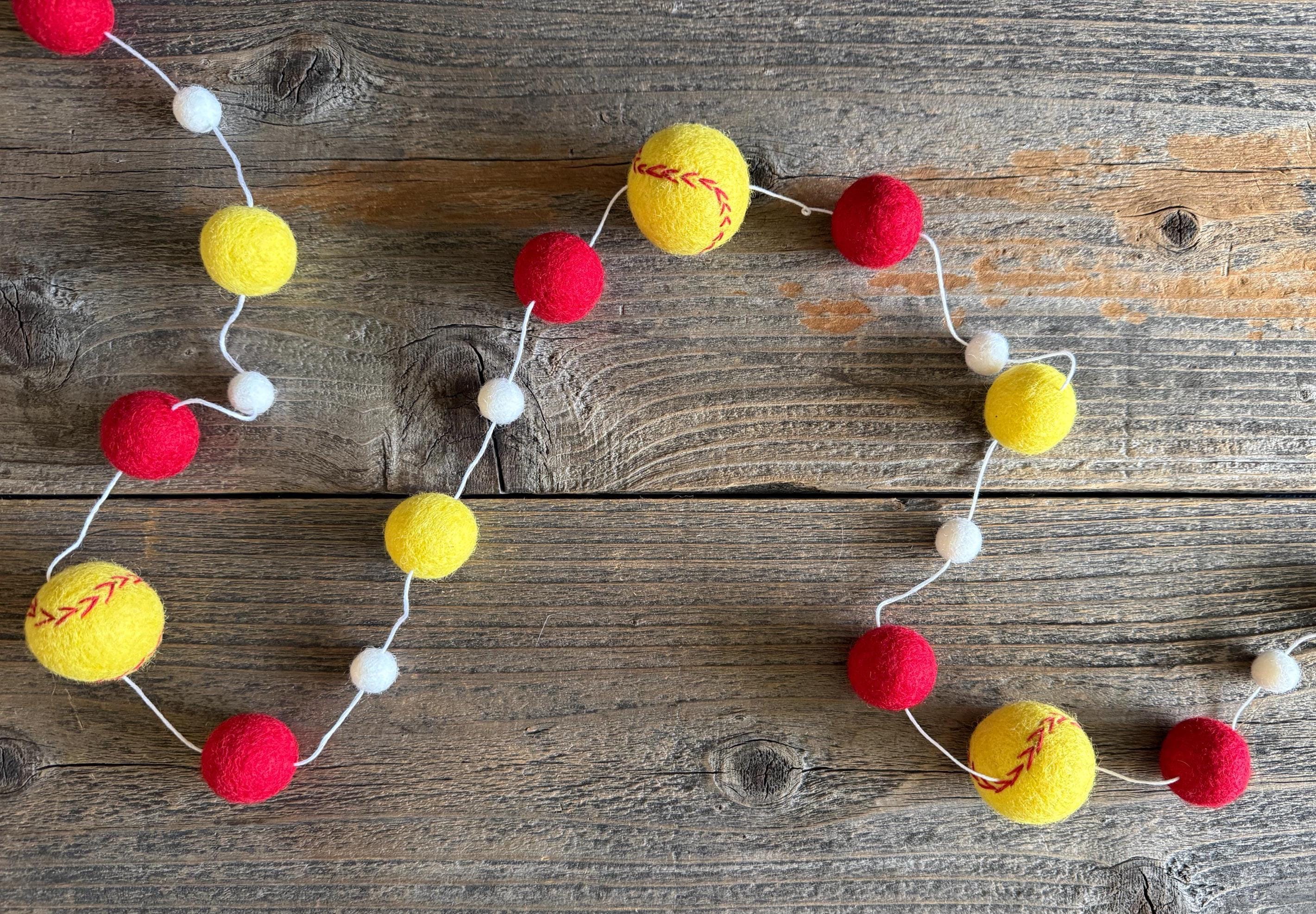 Our Softball Felt Garland is the perfect addition for those sports fanatics out there! Fabulous for team parties, bedroom decor or for your 1 year old's