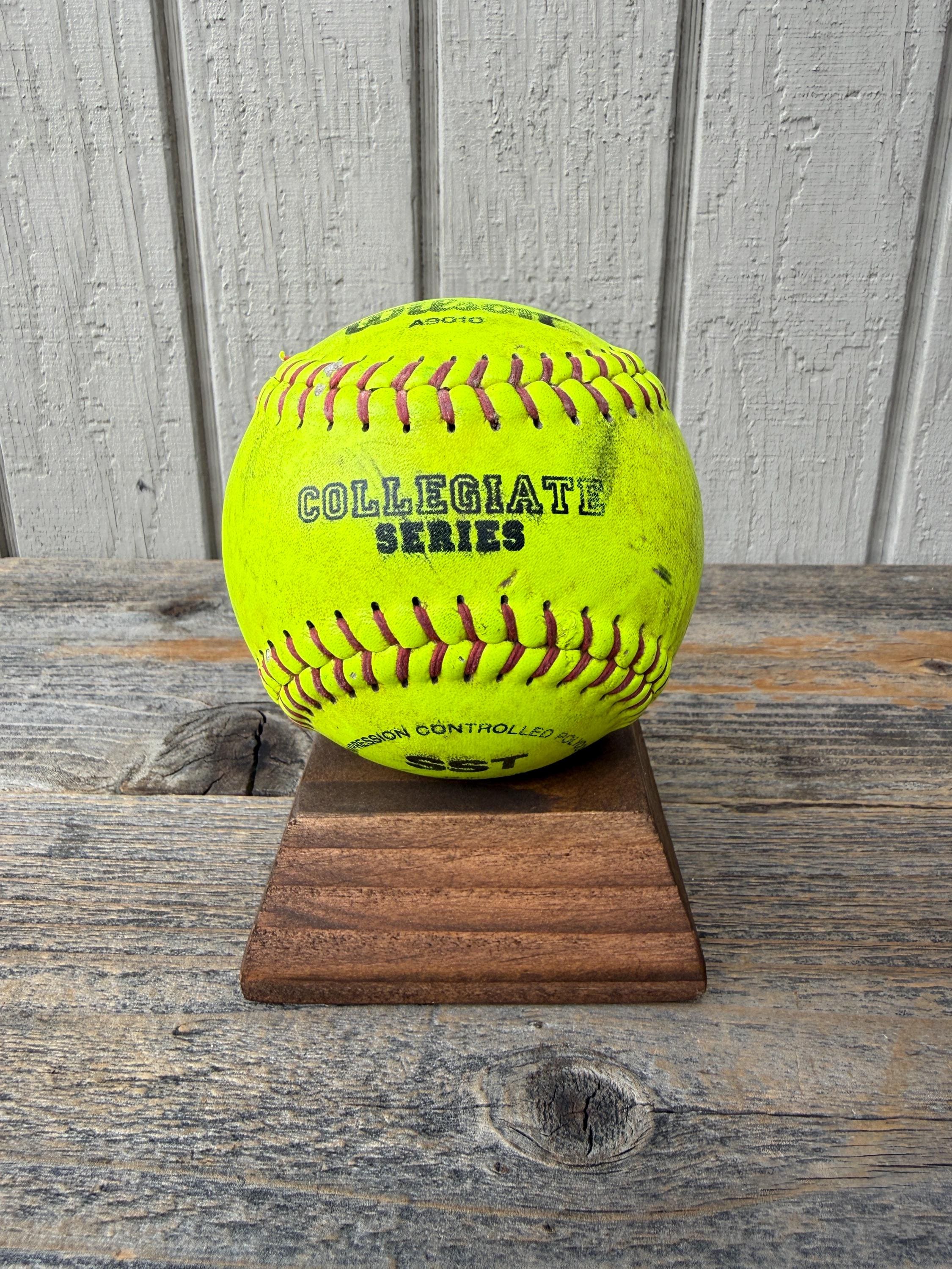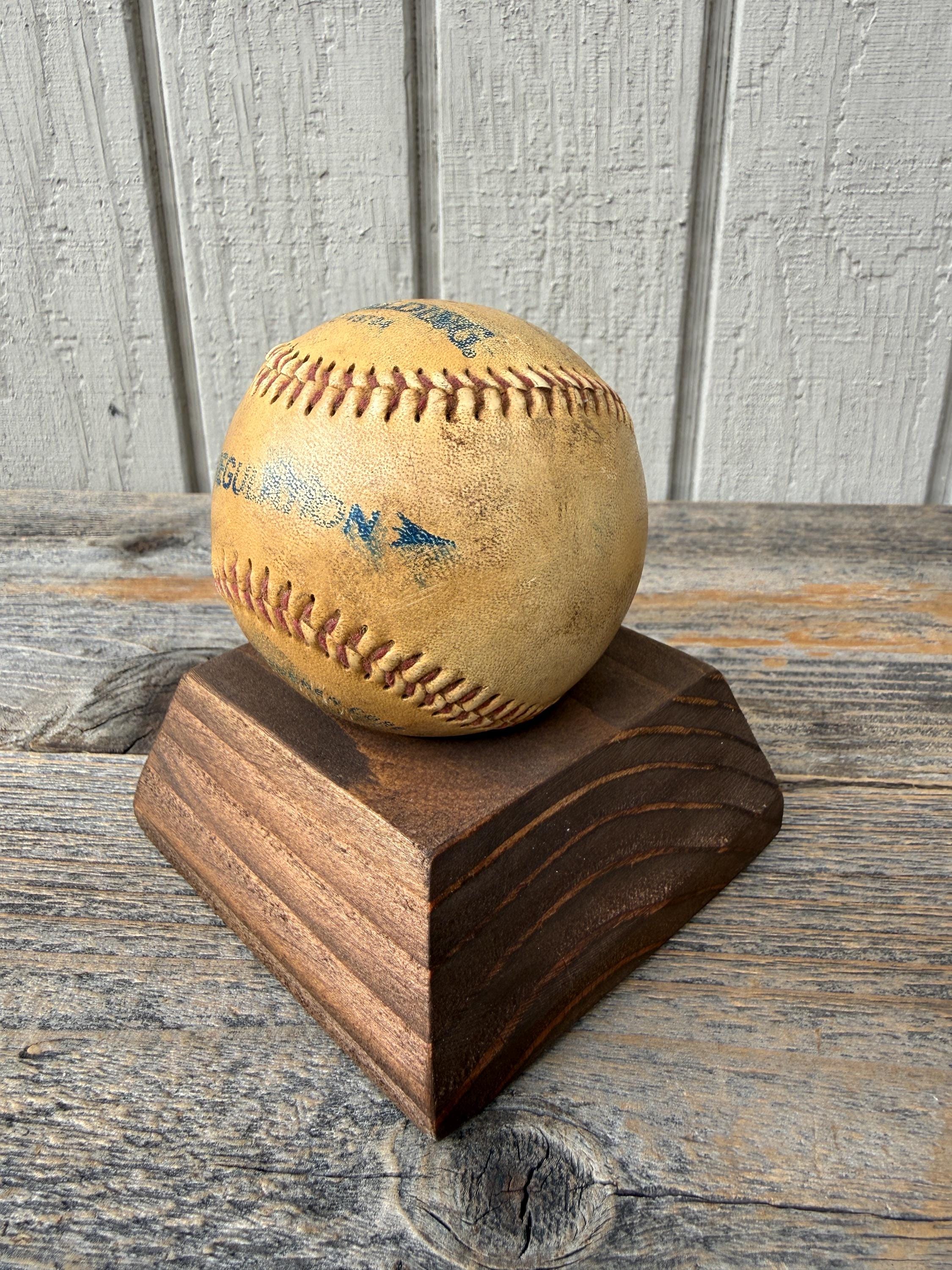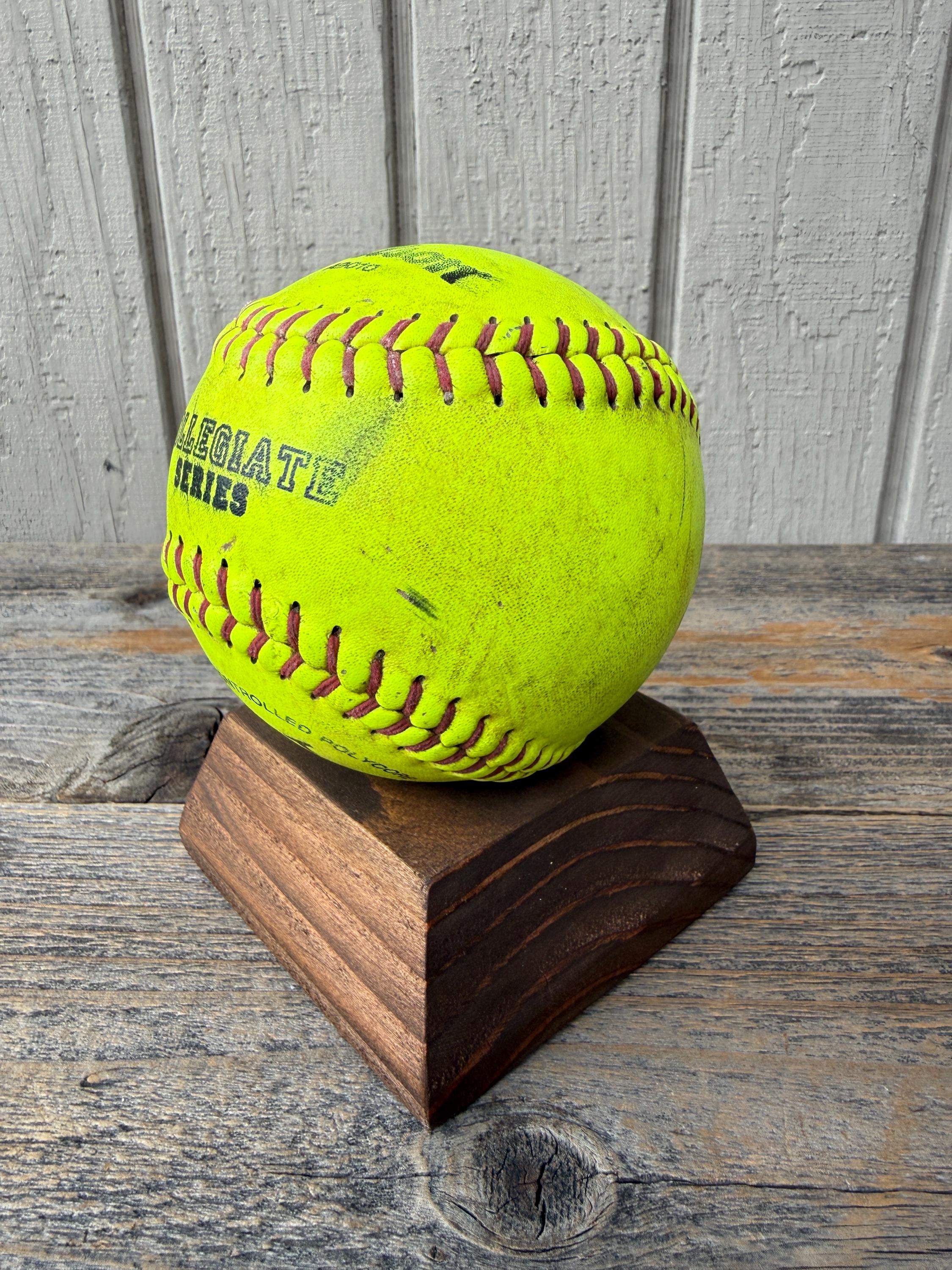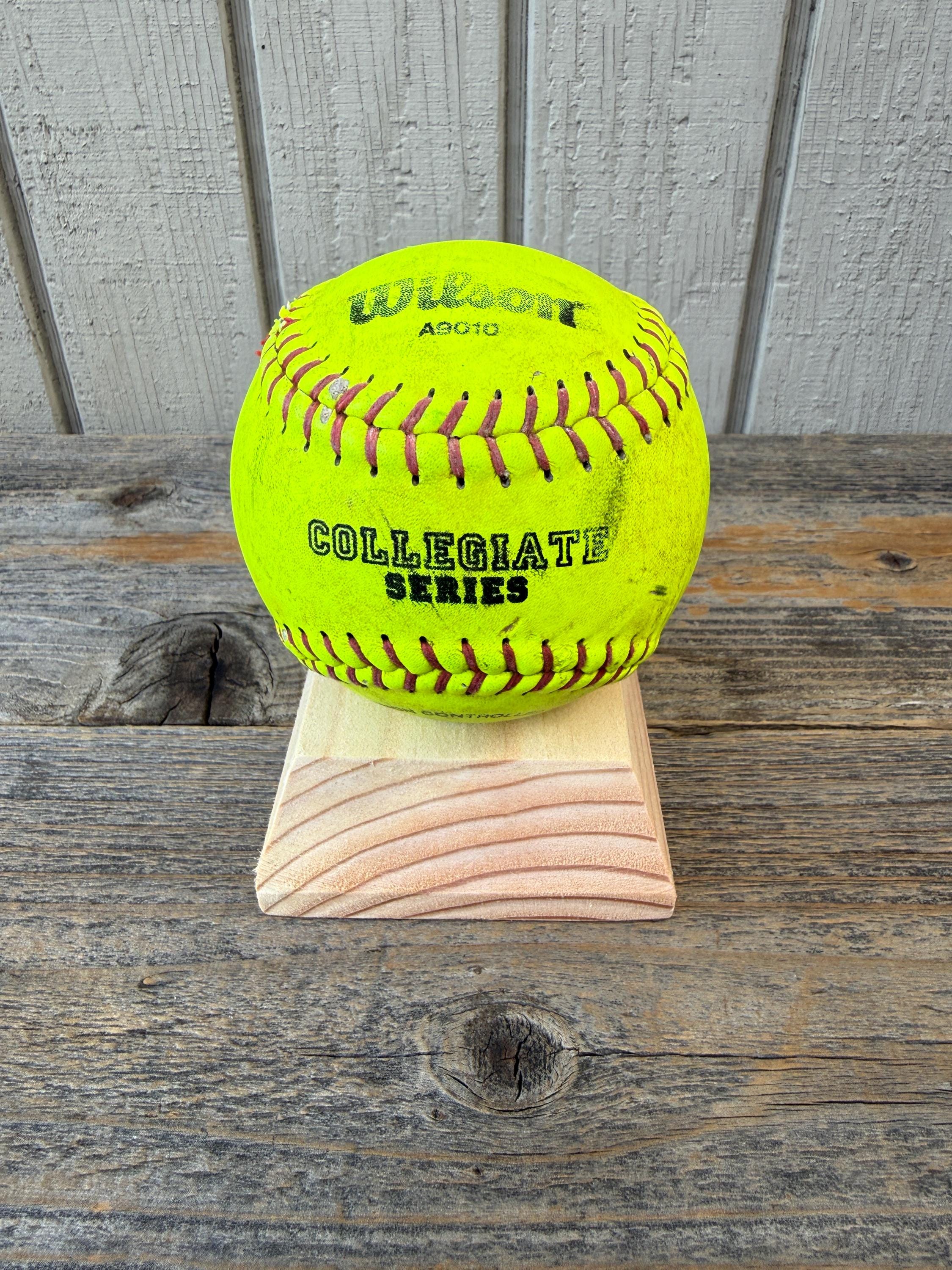 This handcrafted wooden sports ball holder is perfect for displaying a special baseball, softball, or other keepsake ball.