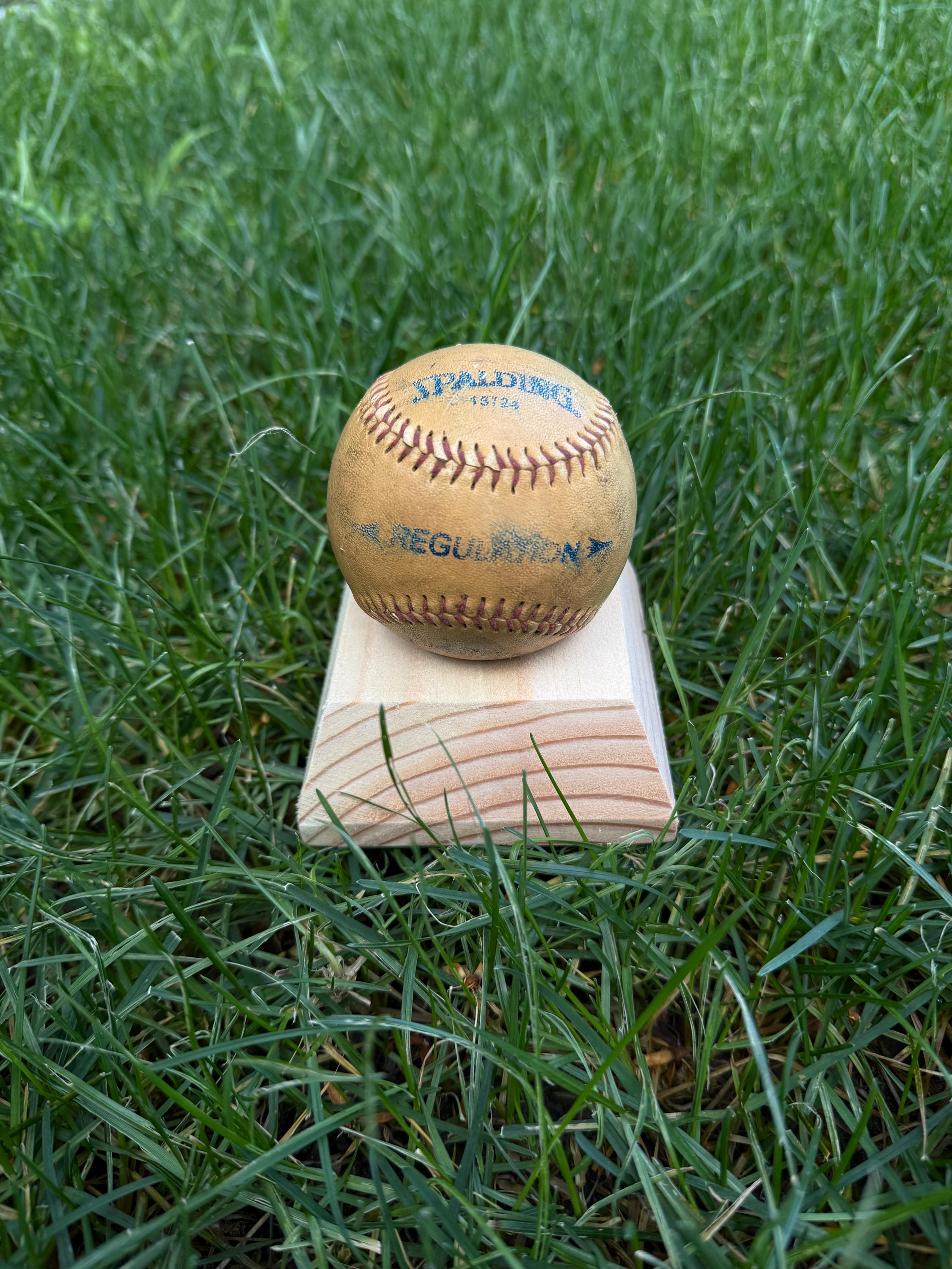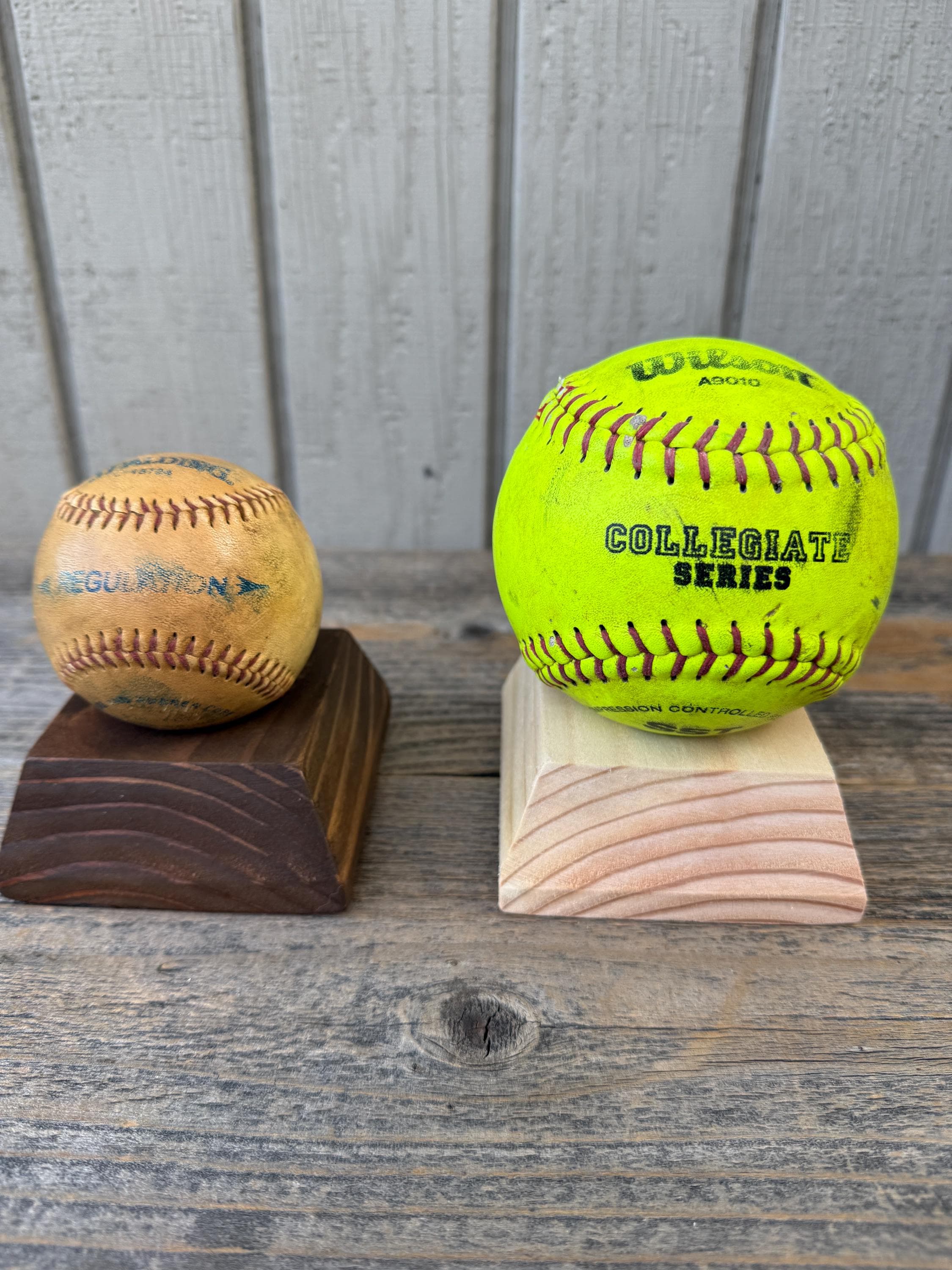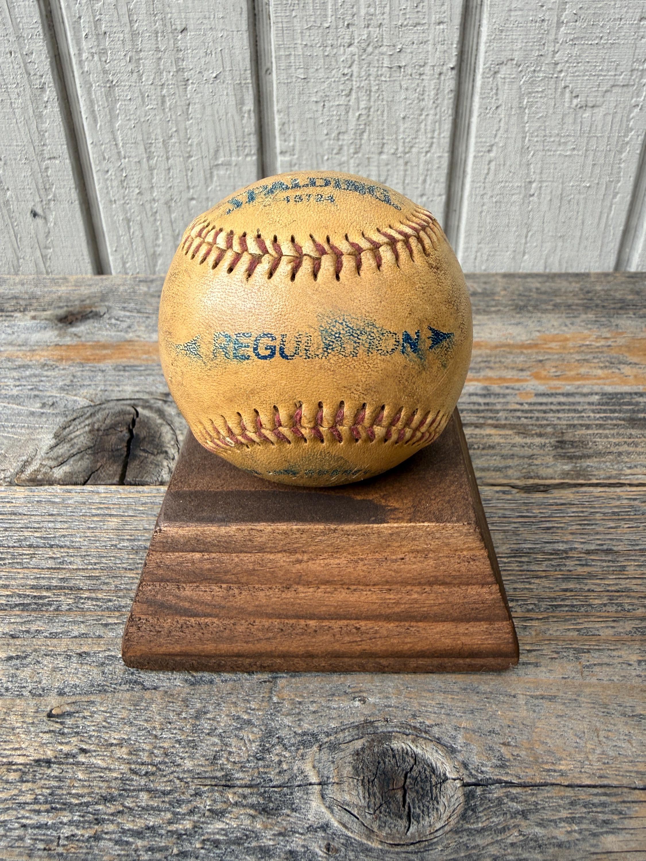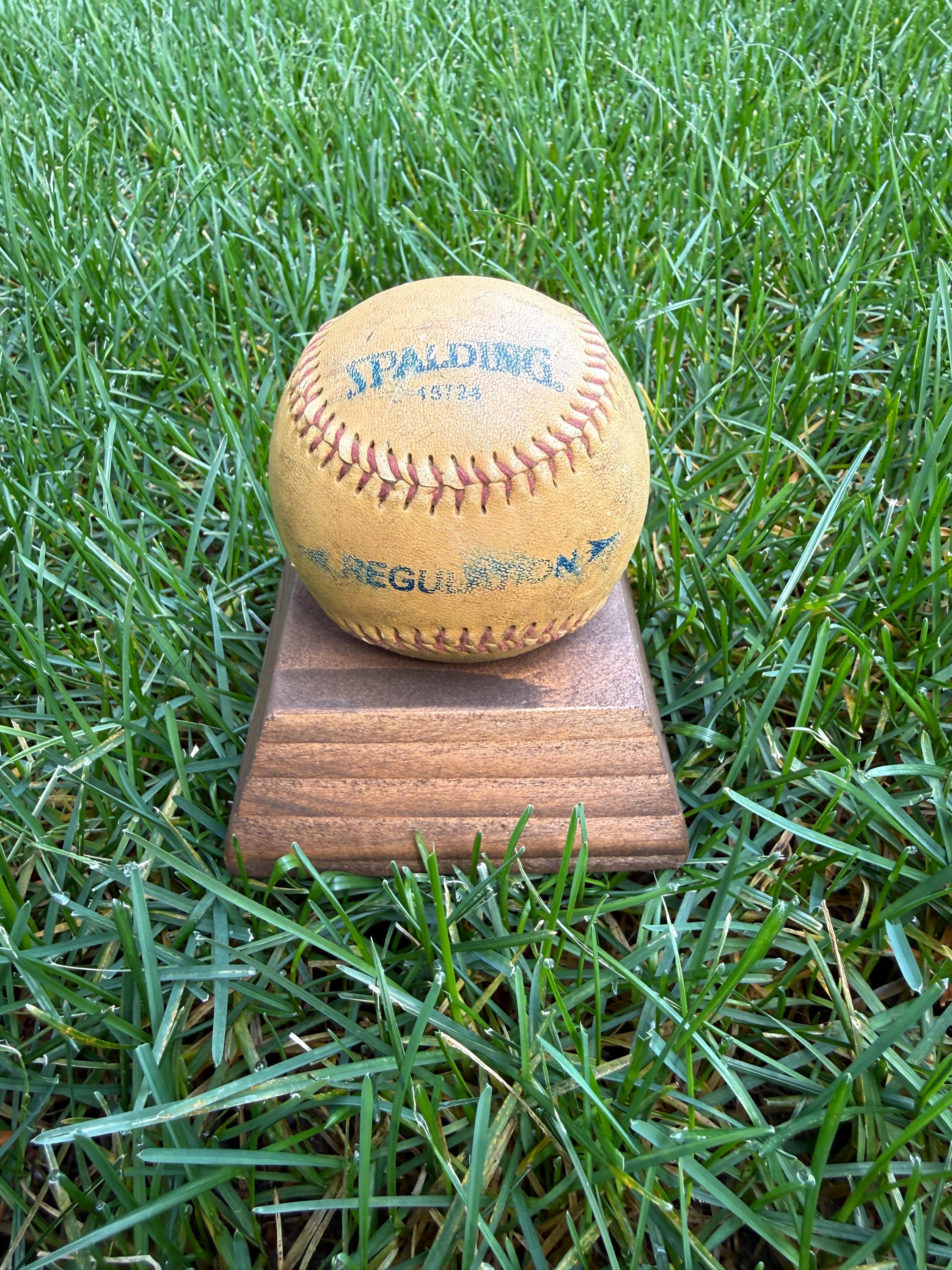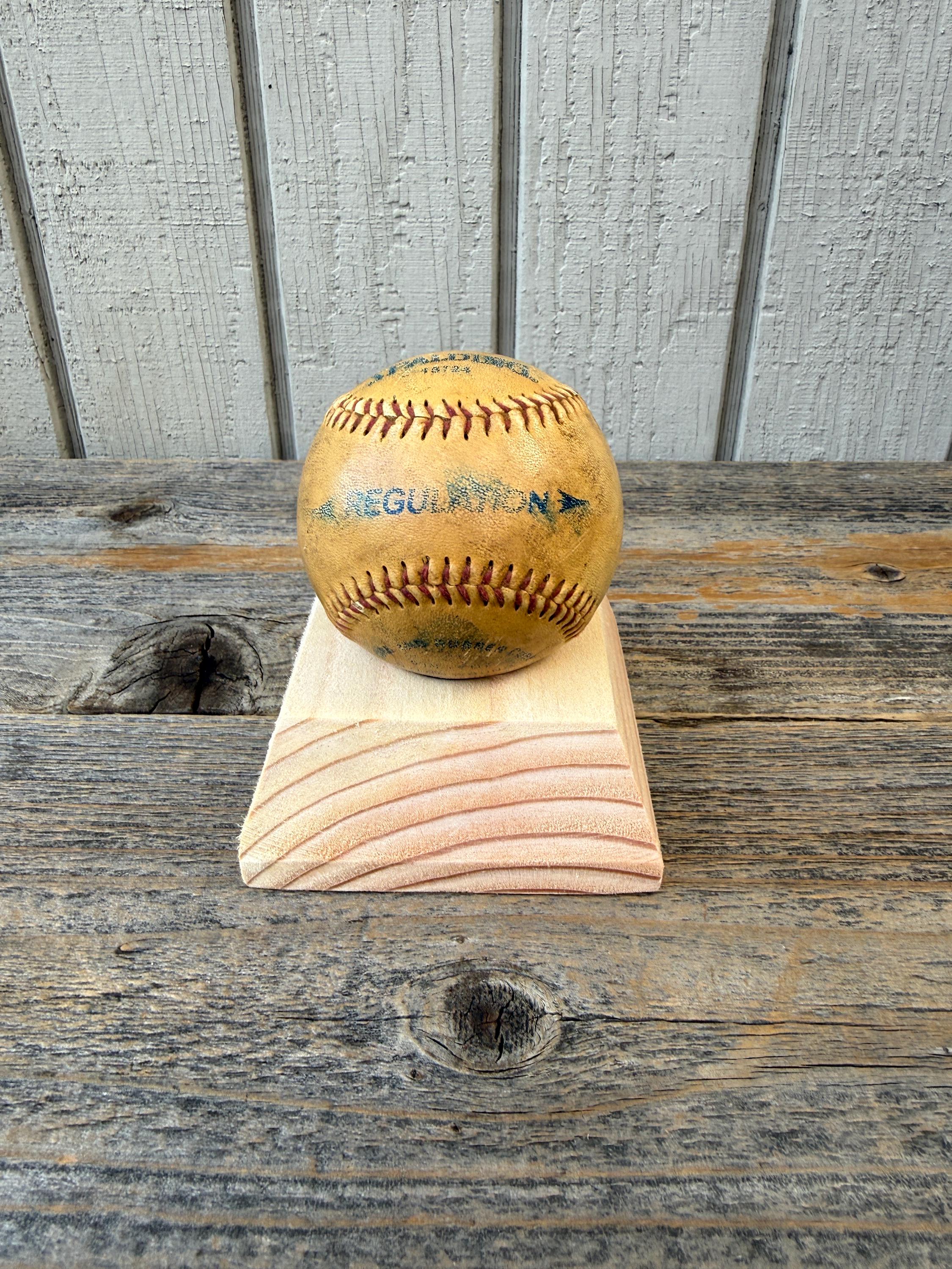 This handcrafted wooden sports ball holder is perfect for displaying a special baseball, softball, or other keepsake ball.