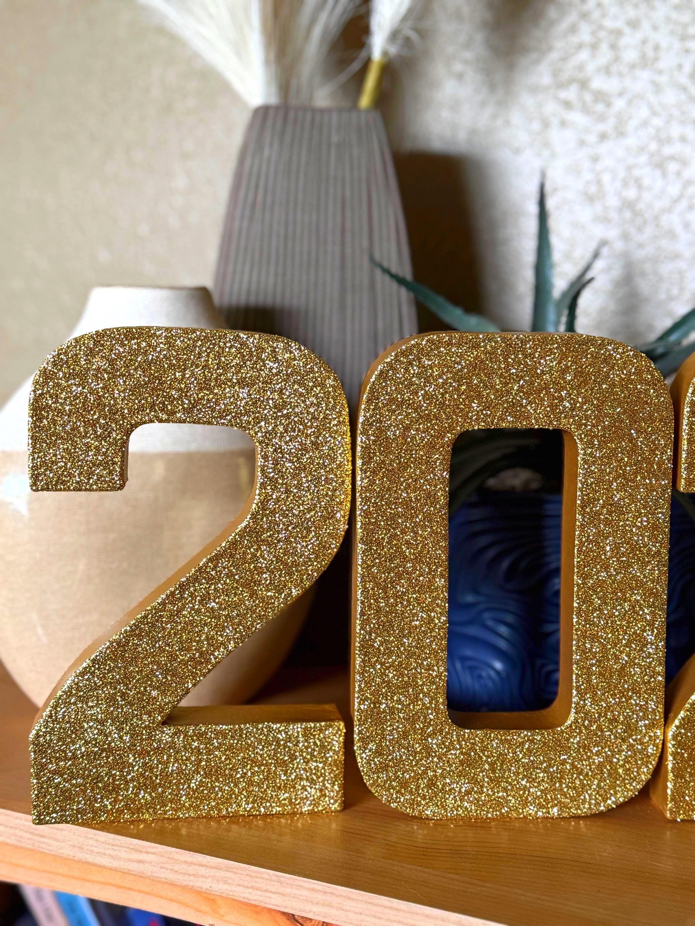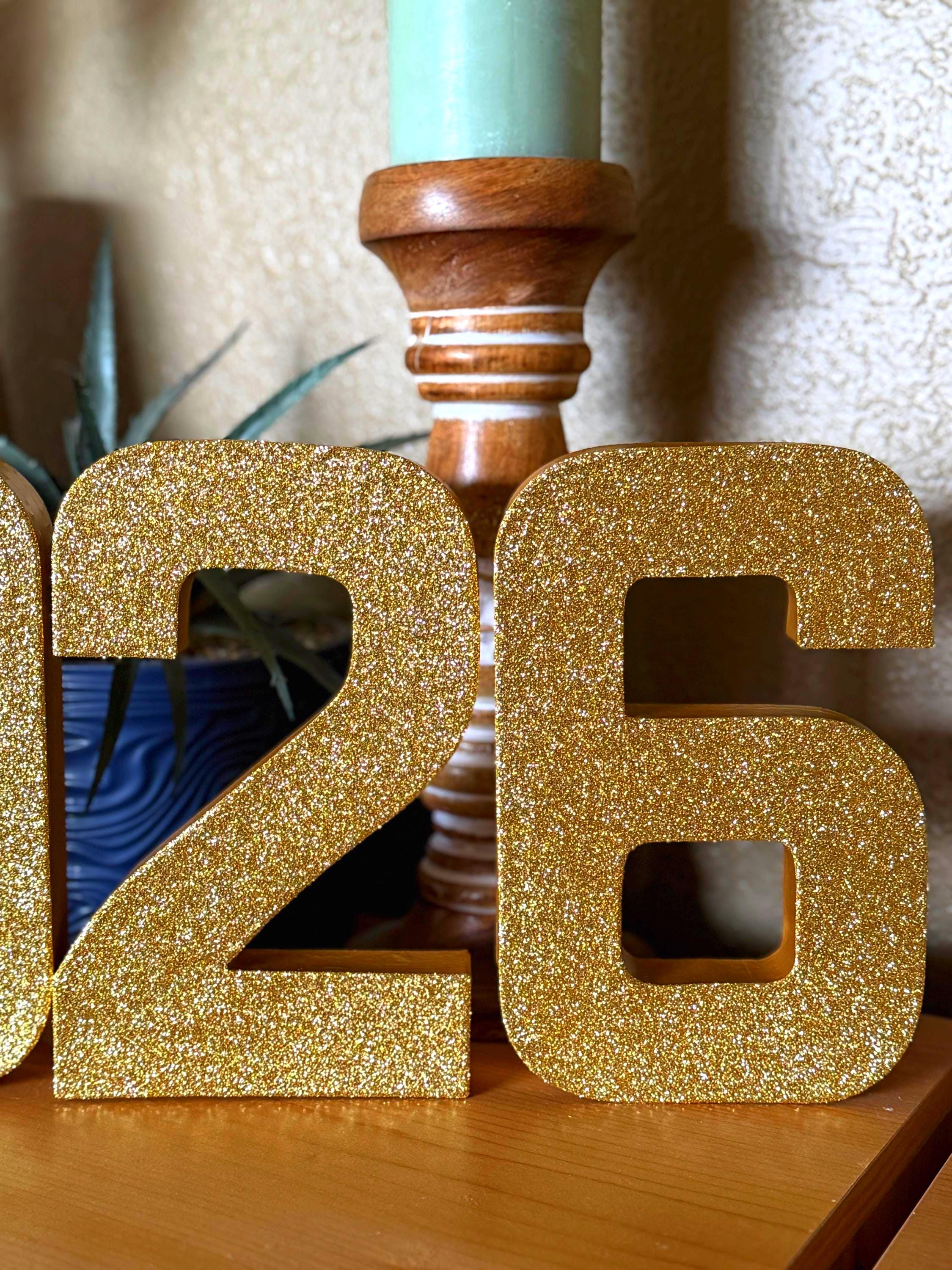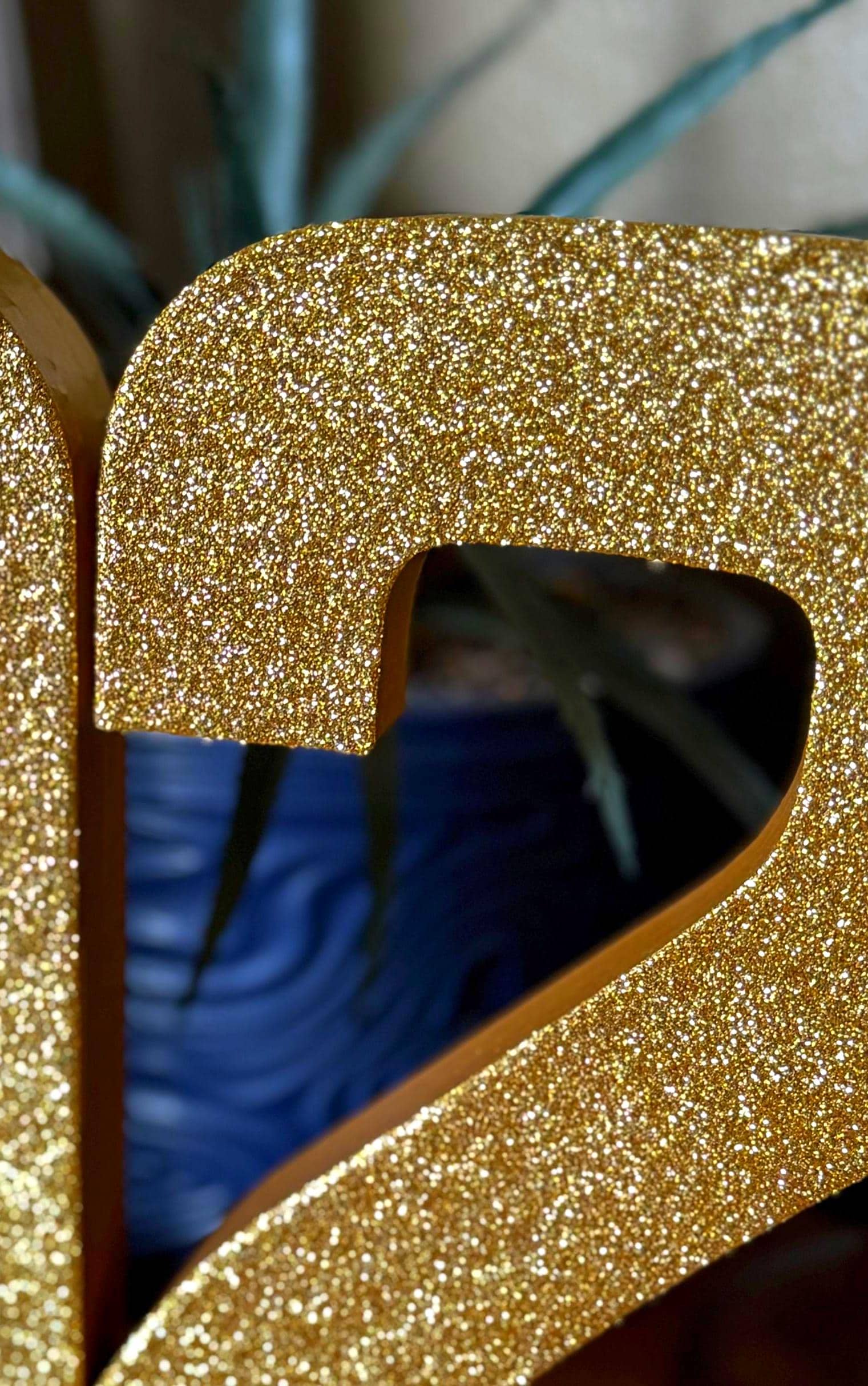 The numbers has been sealed with a clear spray to minimize glitter from shedding