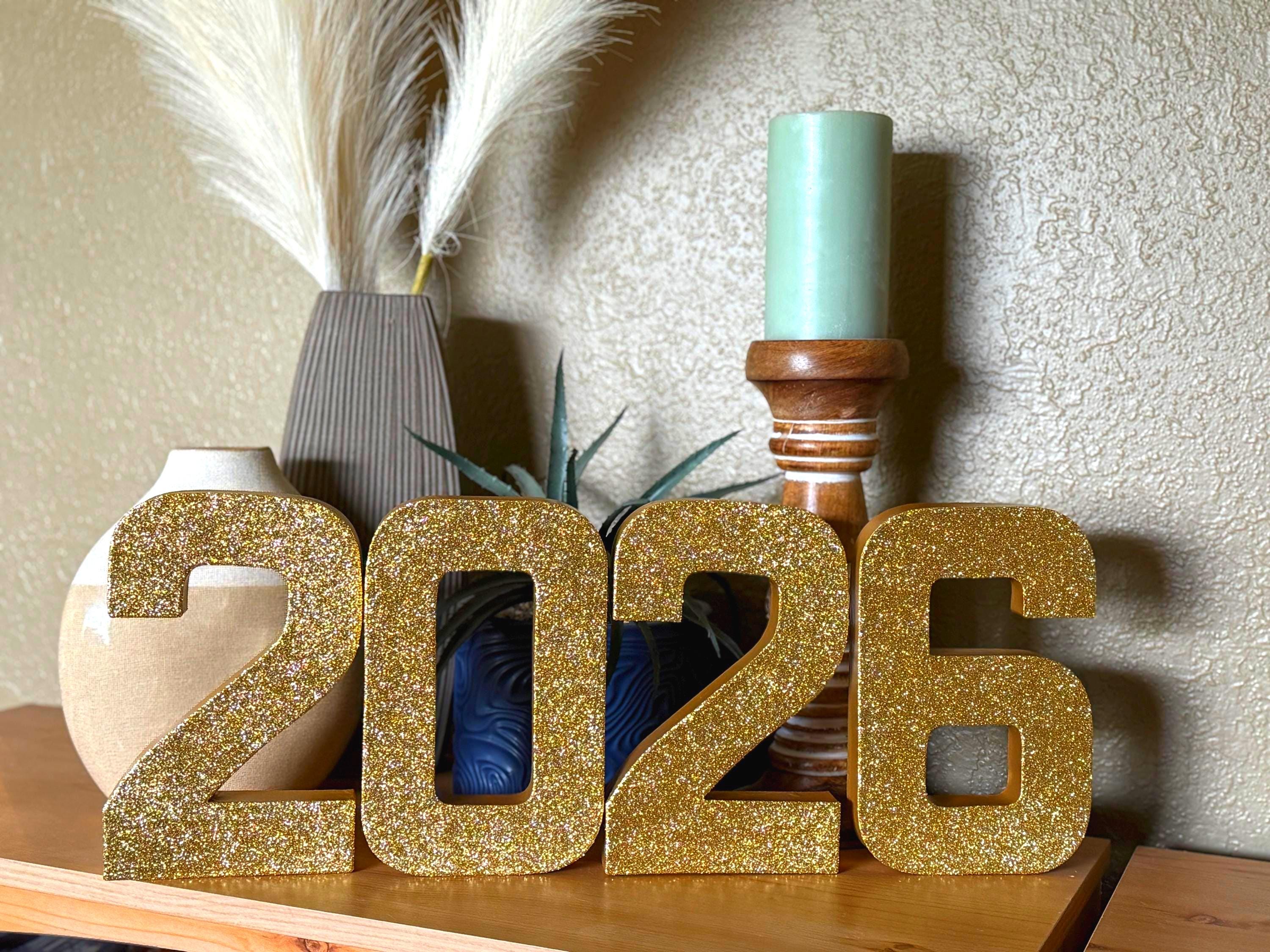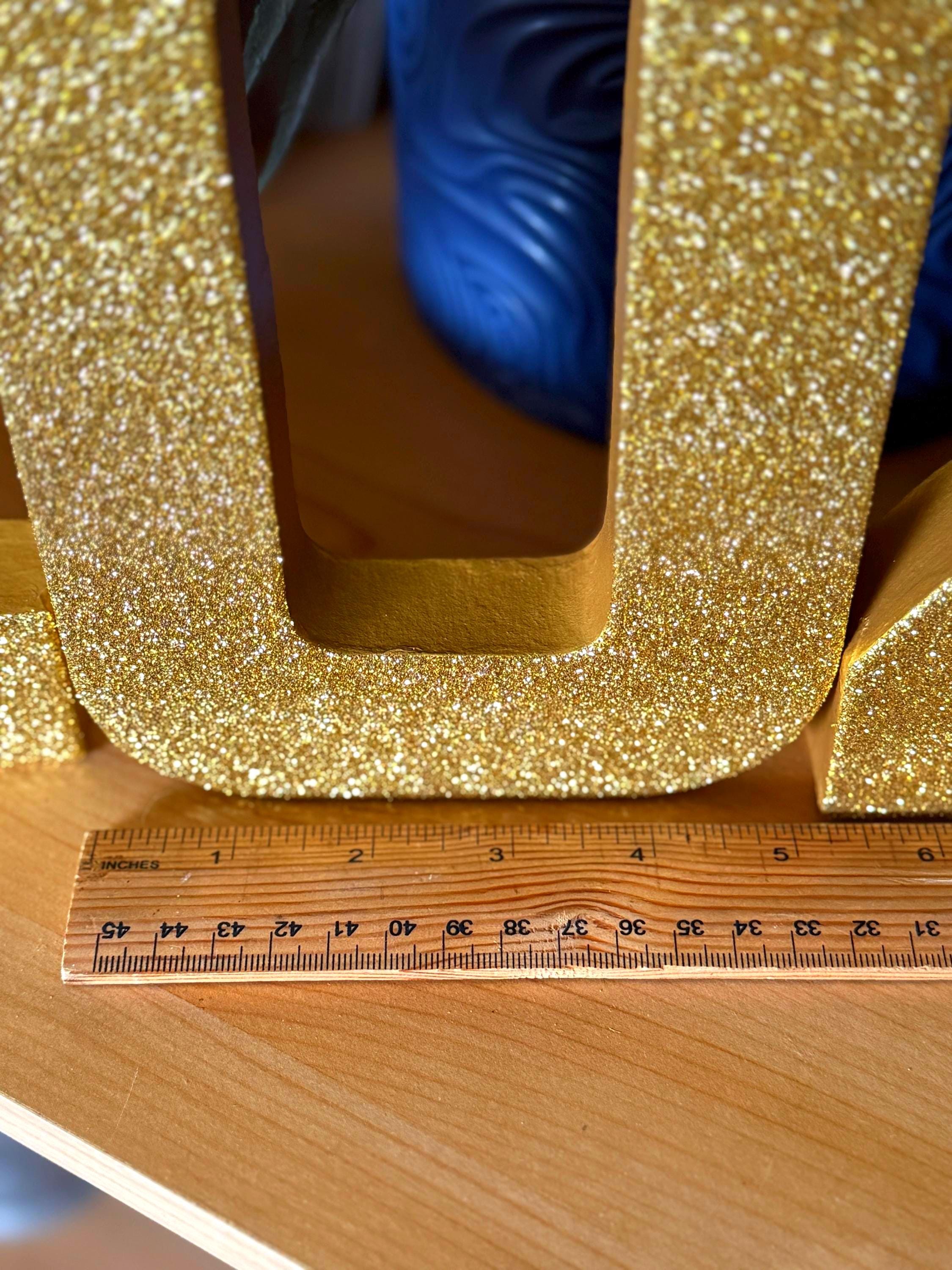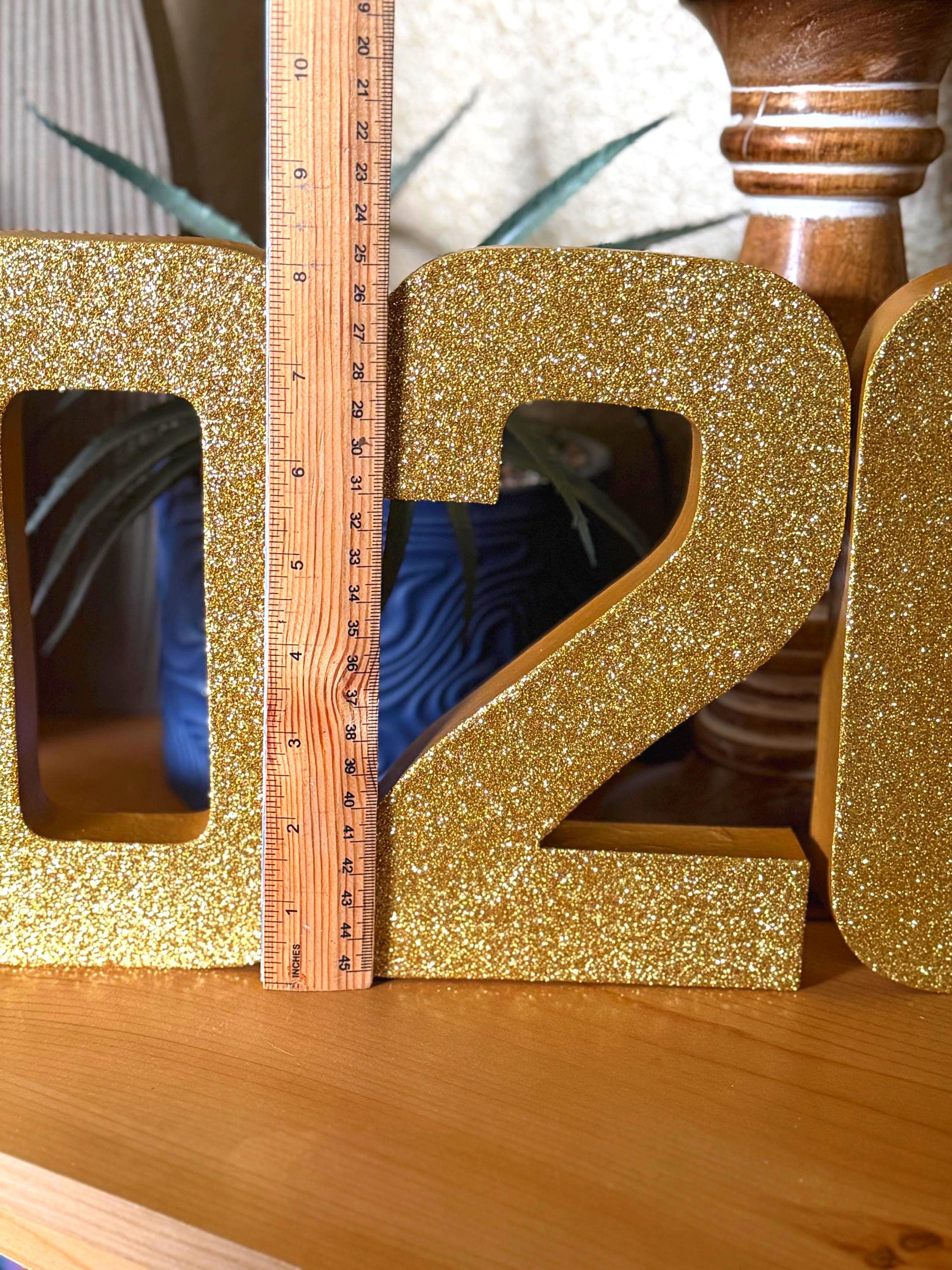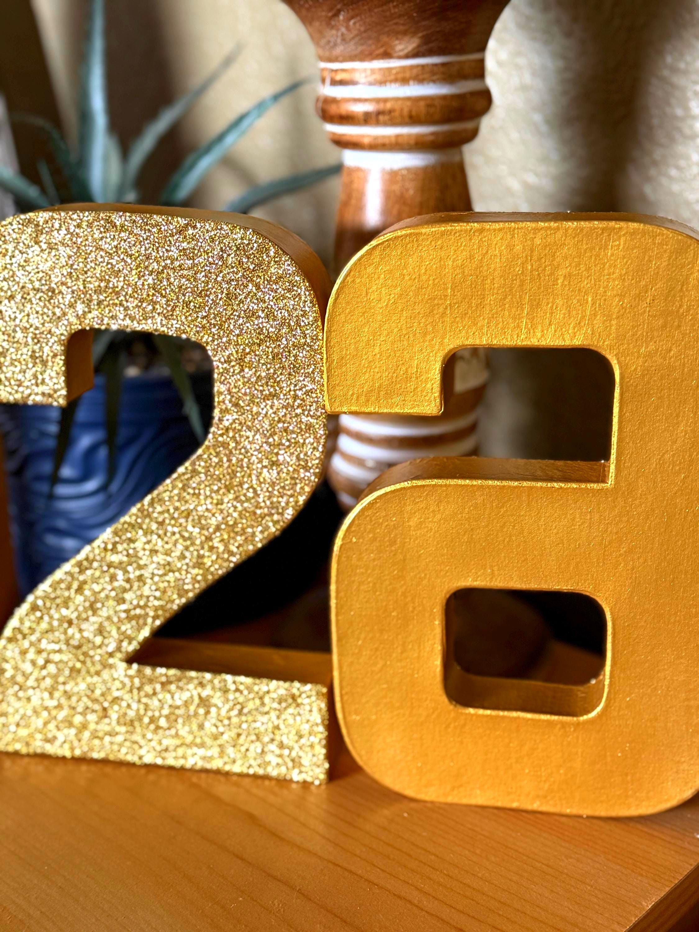 The numbers has been sealed with a clear spray to minimize glitter from shedding