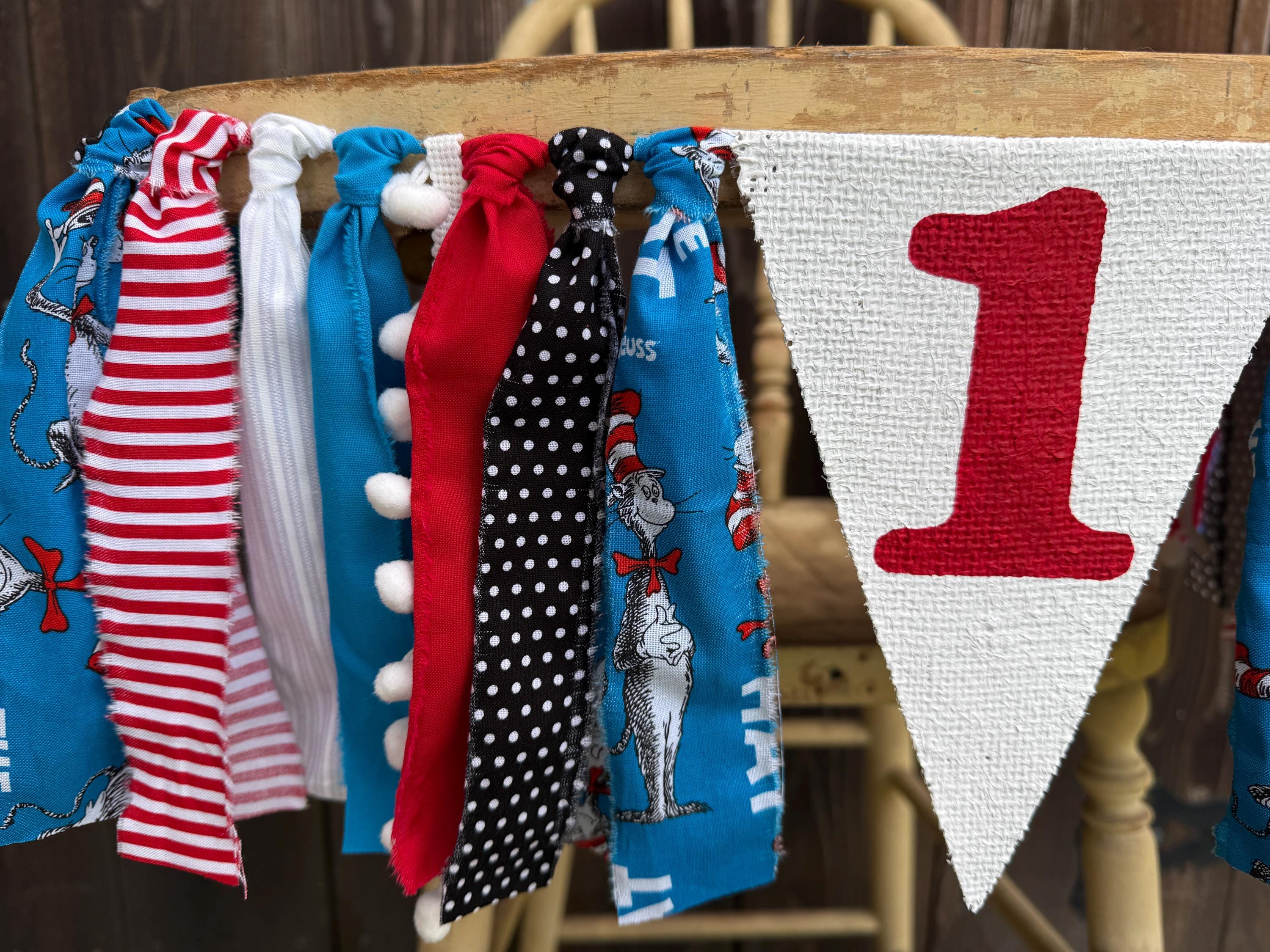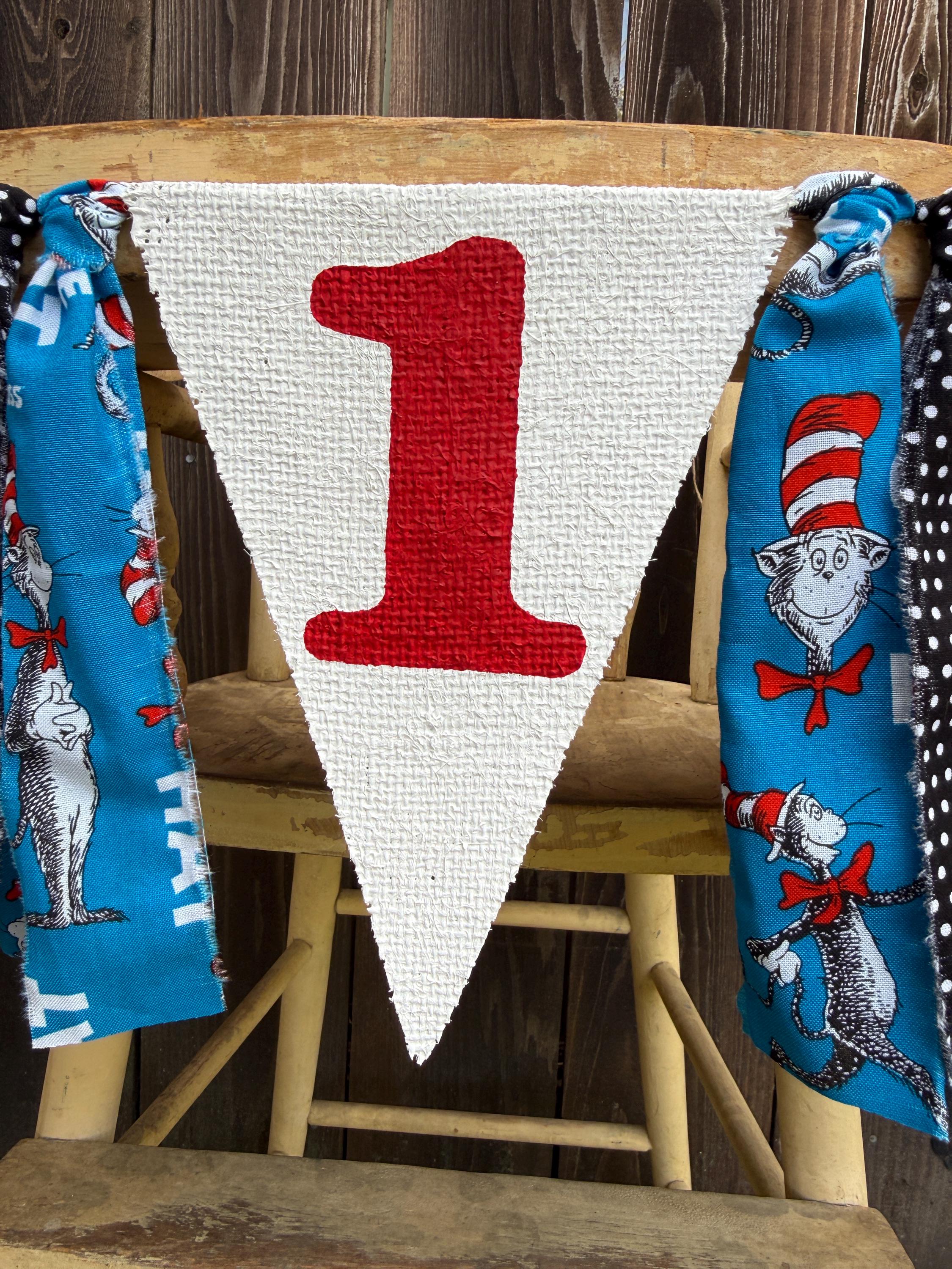 This High Chair Banner is a perfect addition to your little one's first birthday. Or if we customize the pennant it would be great at a baby shower.