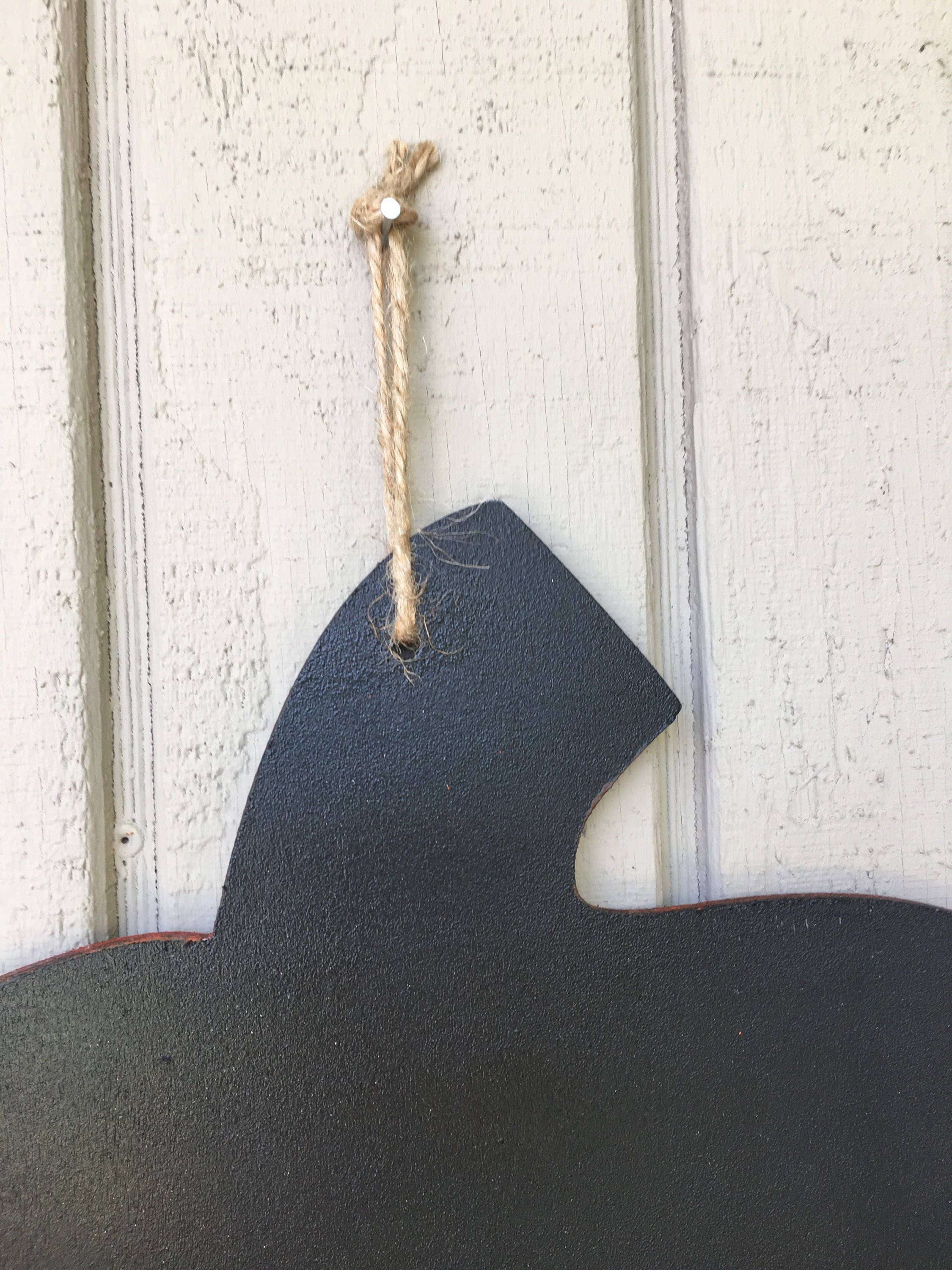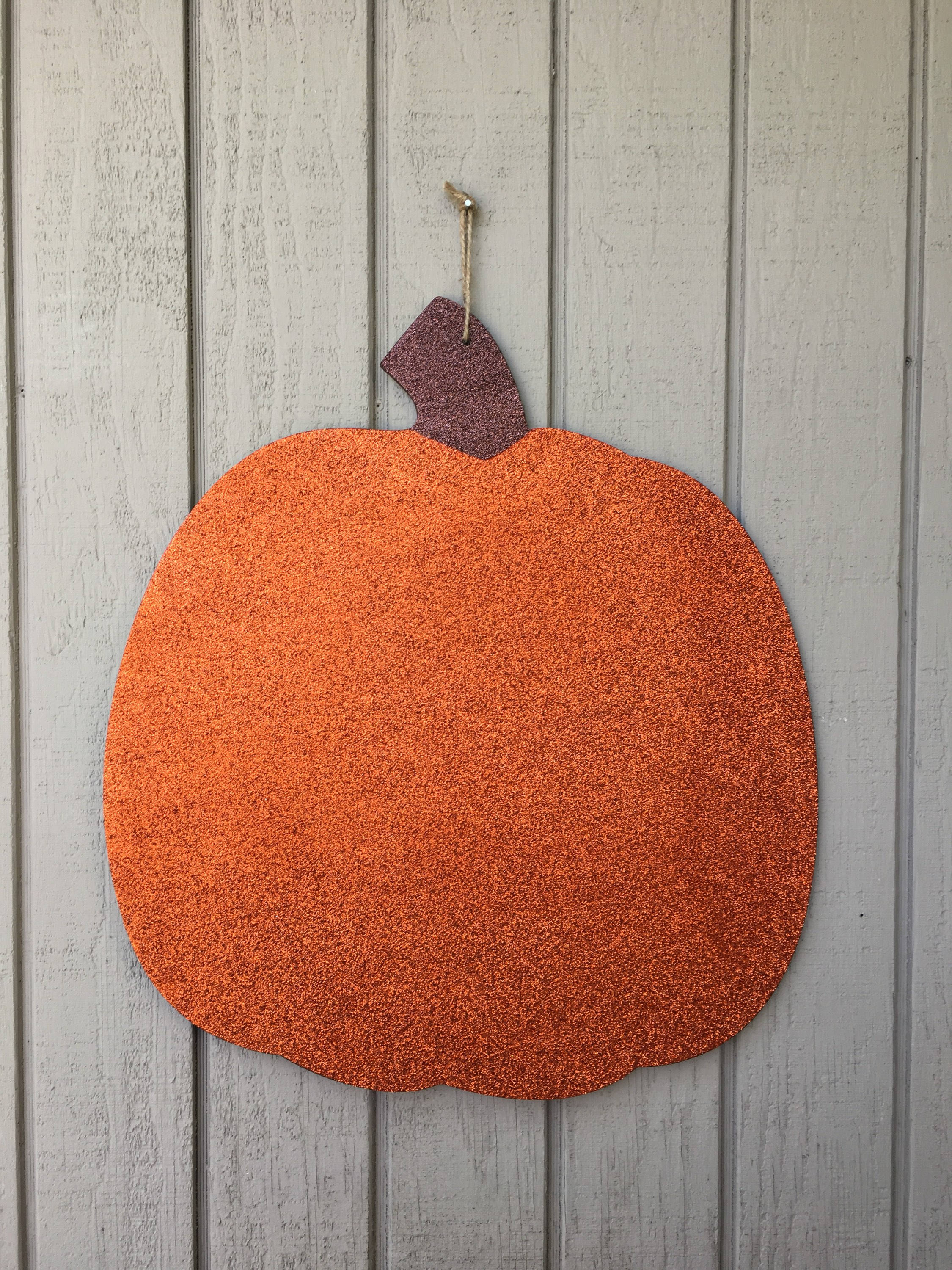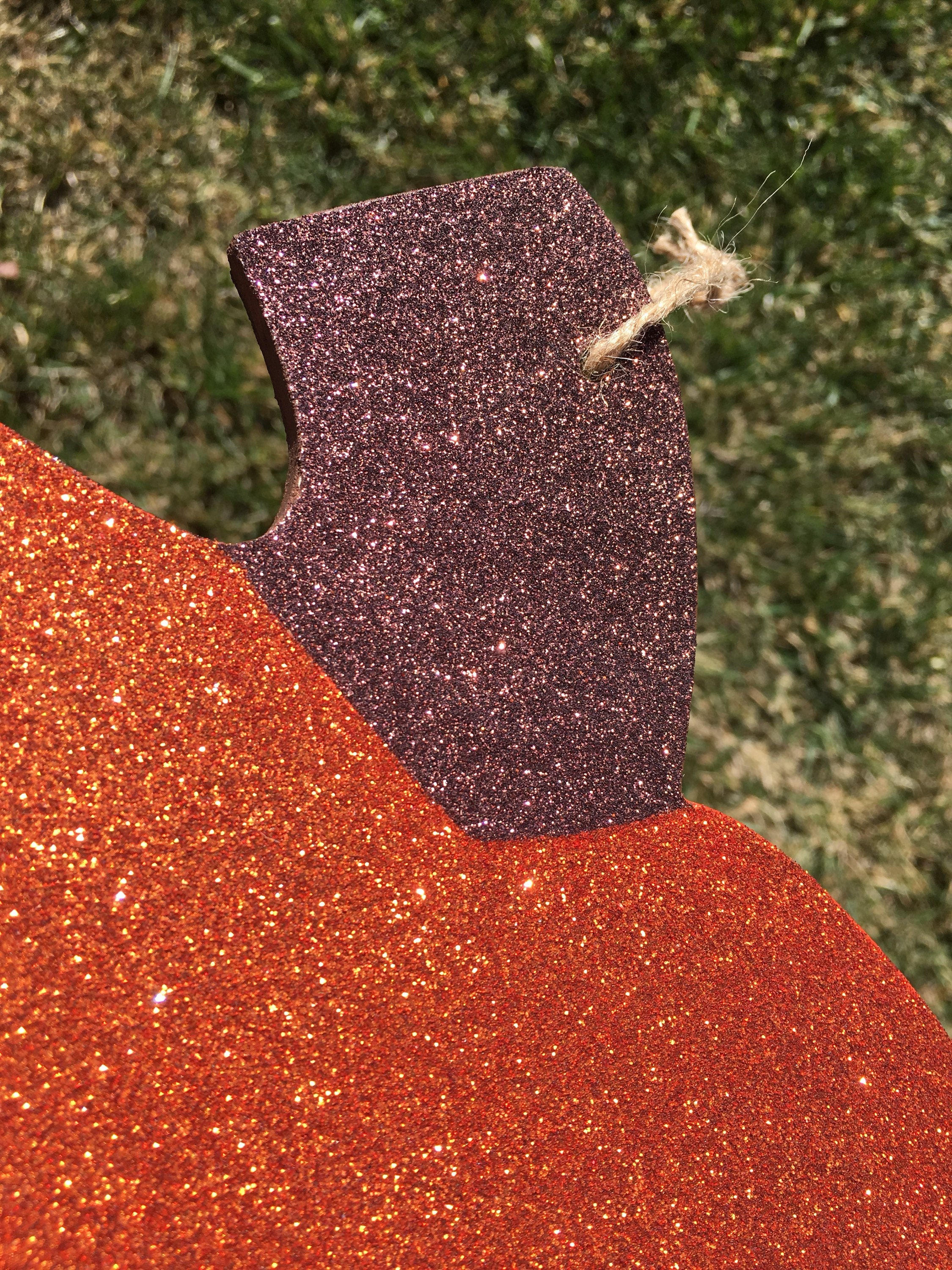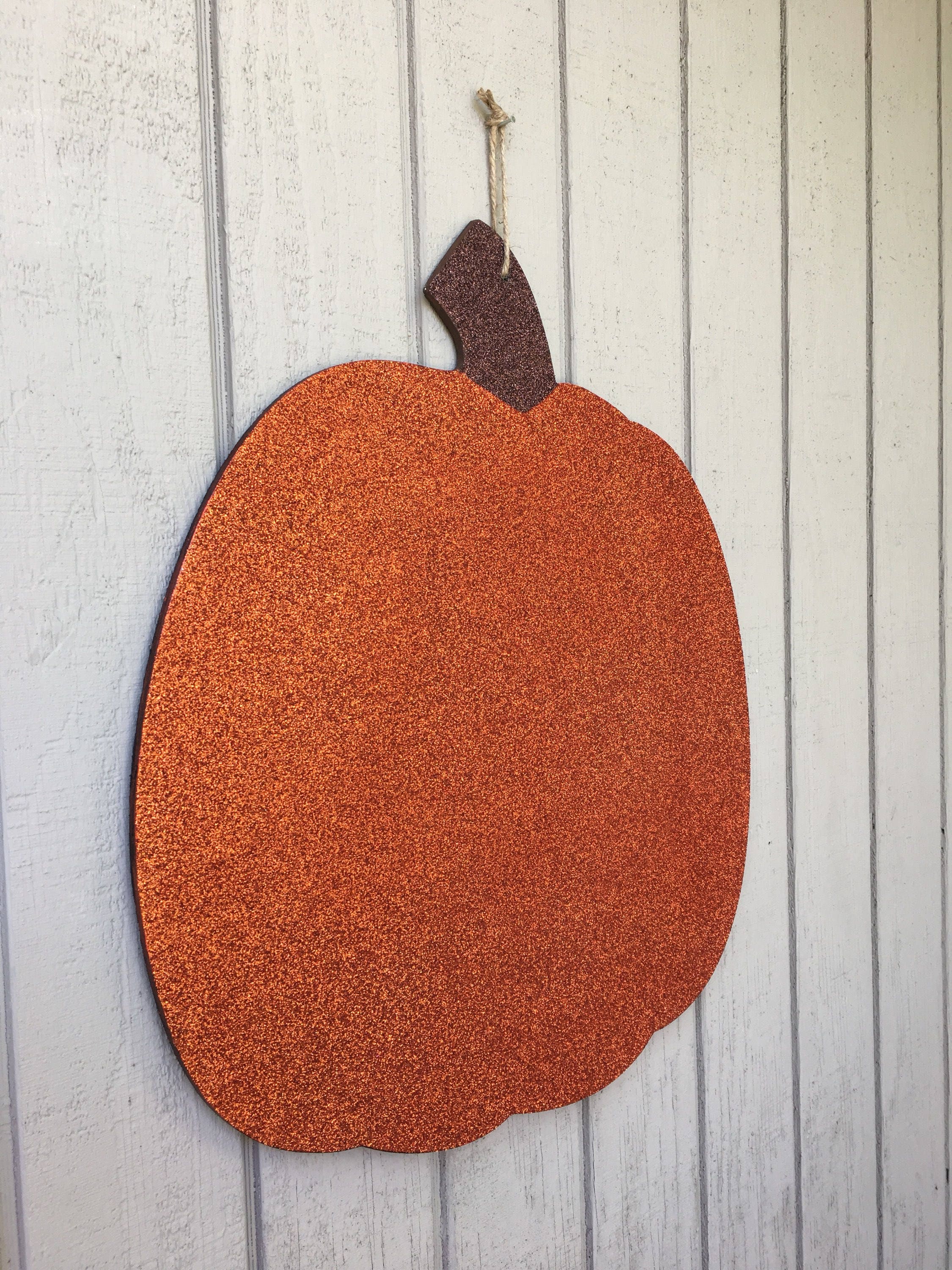 This large wooden glitter and chalkboard pumpkin is great for so many uses. One side is painted and glittered and the other is a chalkboard you can use it to decorate in different ways! Use the glittered side for more of a fun pop of color and the chalkboard side for a more rustic look!