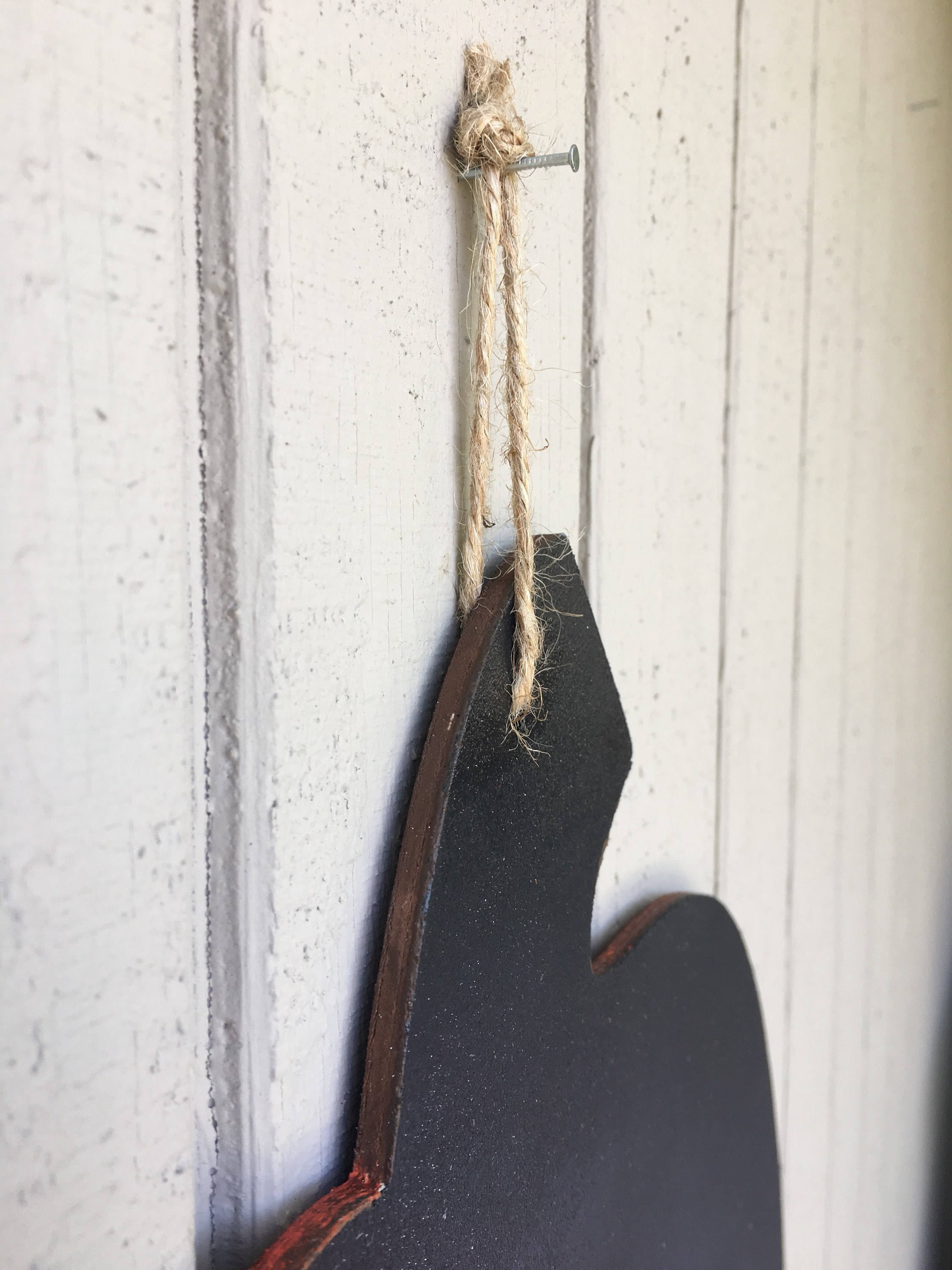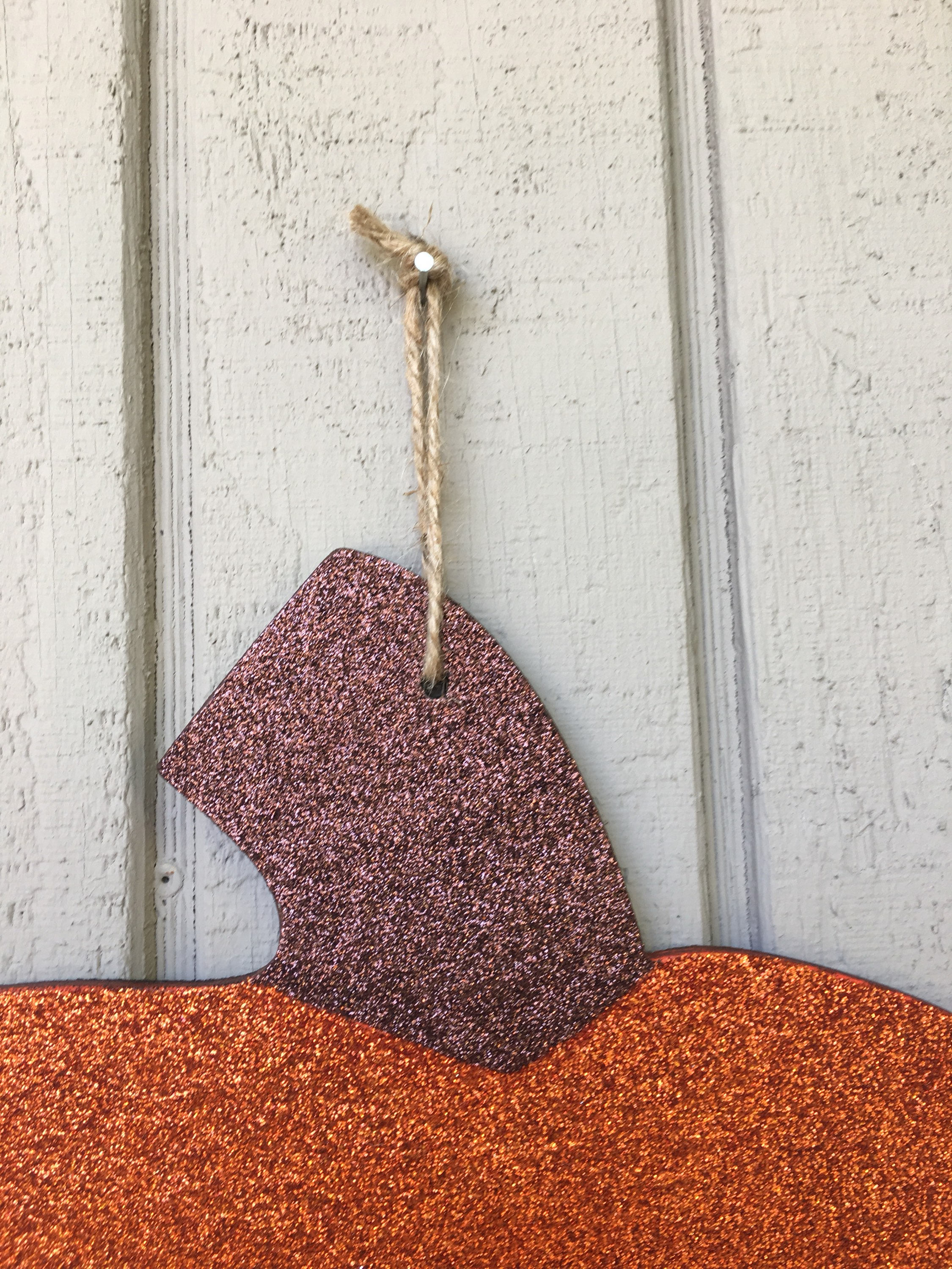 We have attached jute for hanging. The approximate hanging dimension from jute to pumpkin top is 7 inches.